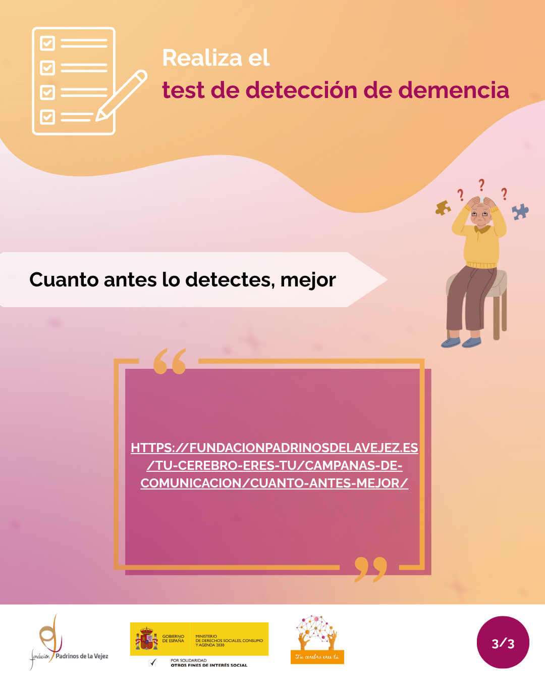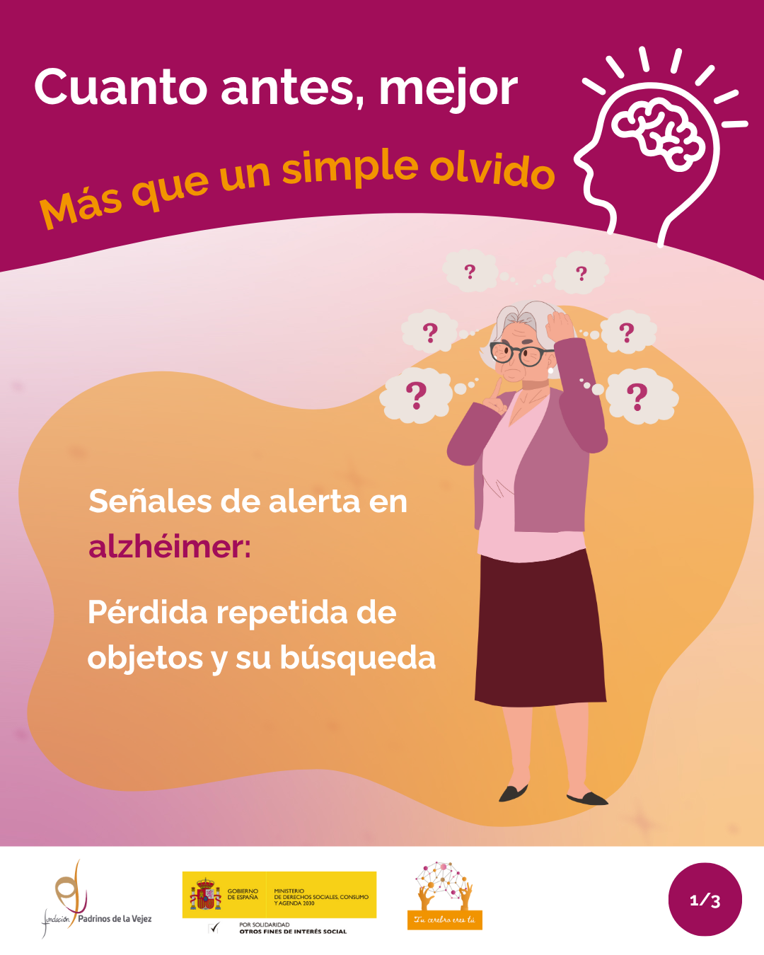 Esta campaña está encuadrada en el Programa Tú cerebro eres tú, aprende a cuidarlo, de la Fundación Padrinos de la Vejez, que recoge en detalle información sobre los síntomas cognitivos, conductuales y emocionales característicos la enfermedad de Alzheimer. Además, facilita un  test breve de detección de demencia que está a disposición de cualquier persona interesada las 24 horas del día, los 7 días de la semana, con resultados al instante y recomendaciones de actuación. Así como un servicio gratuito de asesoramiento y orientación personalizado que ofrece información, apoyo y acompañamiento en todo el proceso.