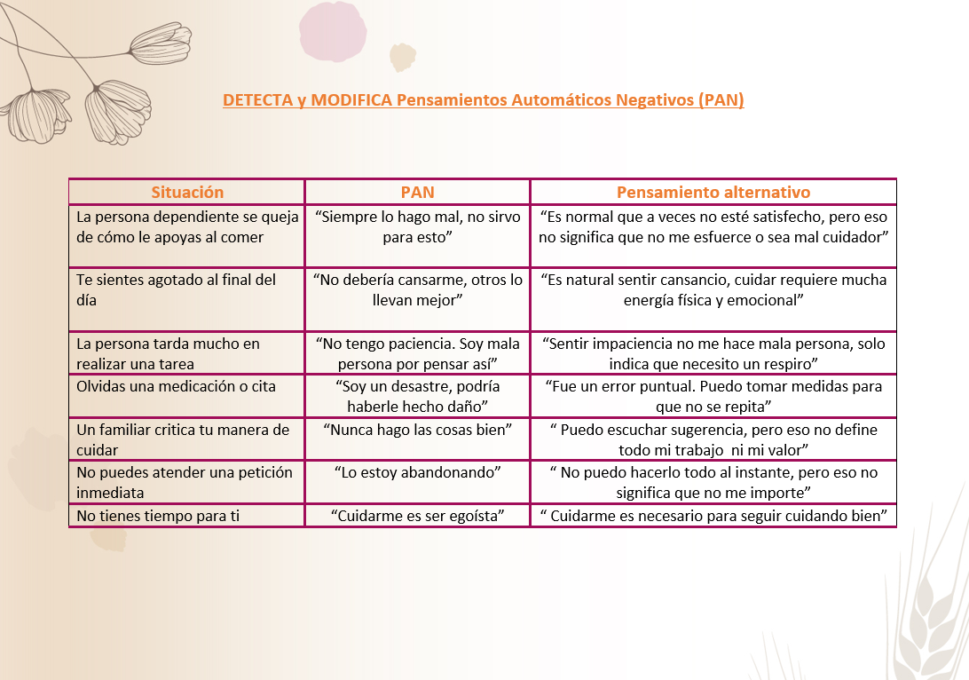 - Sentirse mejor consigo mismo, lo cual influye positivamente en la calidad del cuidado que proporciona y en la propia vida.
